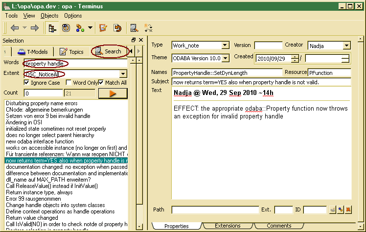 Full text search for notices is provided with the Terminus (ODE tool). By selecting the Search -tab, entering one or more search words and selecting the proper extent/collection ( DSC_Notice for active notices or DSC_NoticeAll for all), a full text search will be performed for all notices in the selected collection.