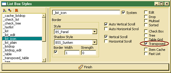 When the view mode has been changed to image view, the image is read from the icon's normal path, i.e. when implementing the doBeforeDataSet() the normal path for the icon has to be set, only. In order to create, update or browse list box styles, one may select Objects/Styles/List Box.