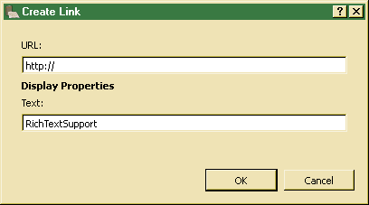 The action allows adding an URL to selected text (create hyperlink). The way hyperlinks are provided depends on the target system. Entering an HTTP URL is the save way. Within ODE and the ODE help system generation, one may also refer to topic names. After clicking the action button The image dialog pops up: